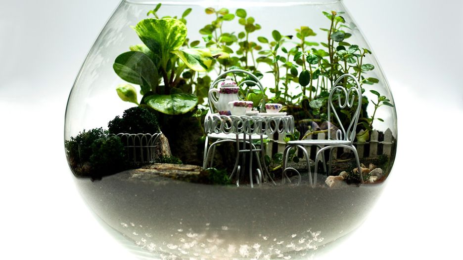 Rośliny, woda i mech w słoiku tworzą zamknięty obieg powietrza i wody, a z zewnątrz docierają do niego jedynie promienie słoneczne, niezbędne do fotosyntezy.