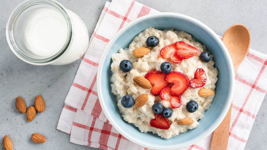 Tak, tak owsianka. Wielu, z niewiadomych względów, wspomina owsiankę, jako koszmar z dzieciństwa. Dobrze przyrządzona może być i smaczna i odżywcza. Najzdrowsza jest taka, którą zrobisz samodzielnie. Płatki owsiane są bogate w błonnik, a to pozwoli Ci szybciej uzyskać uczucie pełności, a później zapobiec przejadaniu się w ciągu dnia.