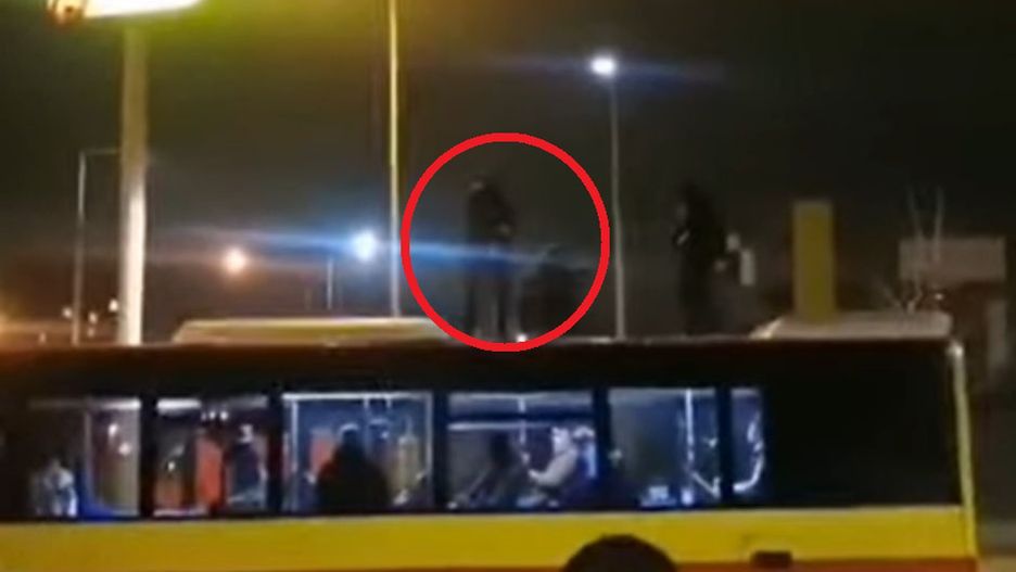 Nastolatkowie przez chwilę stoją na pojeździe, po czym siadają na dachu, a jeden z nich zaczyna robić pompki. W pewnym momencie autobus rusza i odjeżdża z nietypowymi pasażerami na gapę.