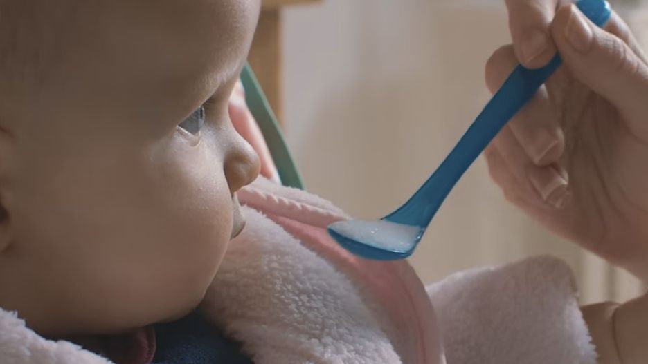 Kiedy chłopiec zaczyna jeść płatki, w miseczce widzimy cukier. Krem czekoladowo-orzechowy też zmienia się w biały proszek. Nie inaczej jest w przypadku jedzenia dla niemowląt ze słoiczka – kobieta podaje maluszkowi łyżki wypełnione słodką trucizną.