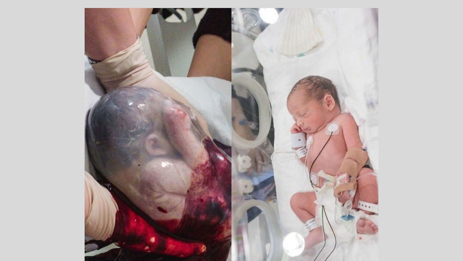 Urodził się w worku owodniowym. Niesamowity widok!