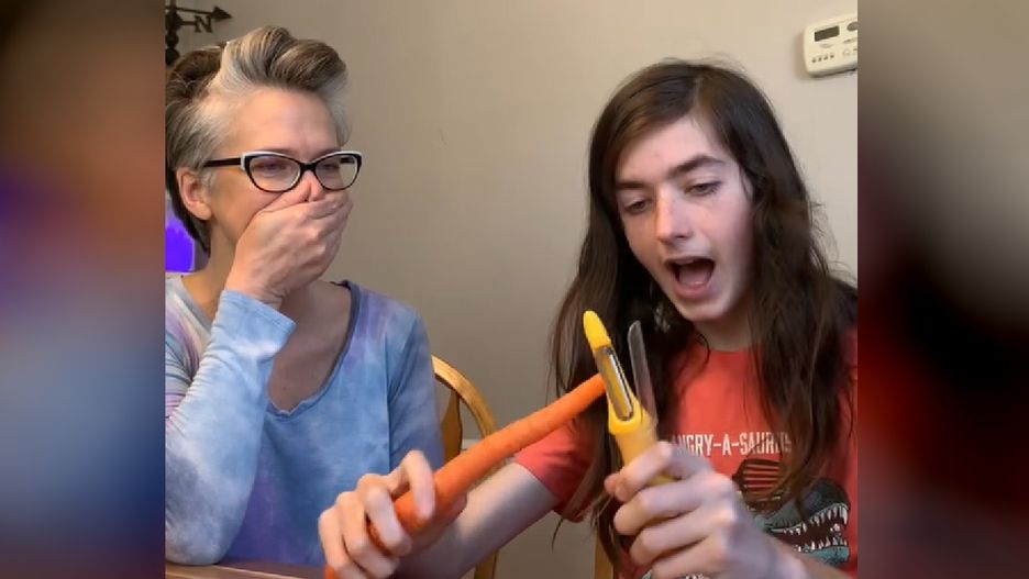 Na nagraniu widać niespełna 15-letniego chłopaka, któremu rodzice wręczają obieraczkę do warzyw i marchewkę. Nastolatek ewidentnie nie wie, w jaki sposób zabrać się za obieranie warzywa i przez dłuższą chwilę nieporadnie szuka prawidłowego zastosowania narzędzia kuchennego.